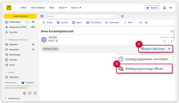 So rufen Sie die Kündigungsvorlage über die E-Mail-Ansicht auf